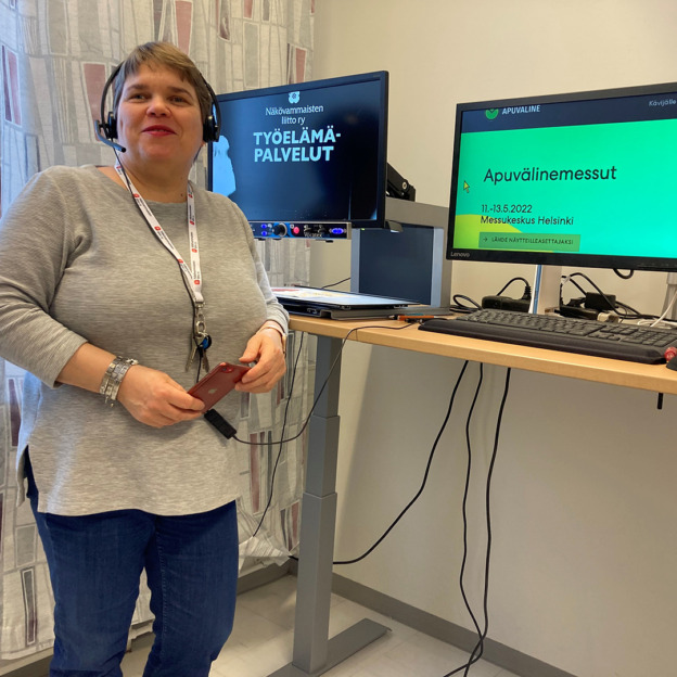 Omakohtainen kokemukseni näkövammaisten apuvälineistä ja siitä kuinka ne näkötilanteen mukaan muuttuvat ja teknologioiden tiimoilta kehittyvät, auttaa minua asiakastyössäni työelämäasiantuntijana. Kohtaamme Työelämäpalveluissa asiakkaita, joiden näkö on heikentynyt työikäisenä, siinä kohden näkövammaistaitojen opettelulla on iso merkitys. Motivaatio pitäisi löytyä mahdollisimman pian, ettei työelämä menisi menojaan. Työssä pysymistä ja sinne pääsemistä tukevat apuvälineiden ohella, ammatillinen kuntoutusselvitys, vammaispalvelut sekä TE-palveluiden tukitoimet. Näkövammaisille ammatillista kuntoutusselvitystä tuottaa Kuntoutus Iiris (6a48). Selvitys on kattava ja siinä käydään läpi myös apuvälinetarve.